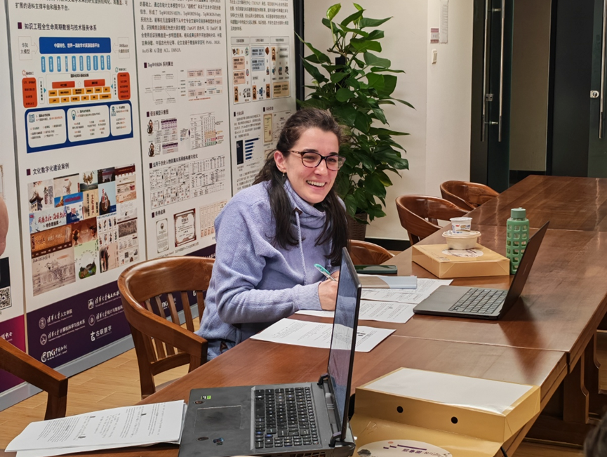 2025年10月16日中午,《清华大学藏战国竹简》研究与英译项目成员、耶鲁大学博士后研究员梅林(Maddalena Poli)应邀参加清华大学出土文献研究与保护中心举行的“清华简《廼命二》英译工作坊”。工作坊由中心副教授武致知(Rens Krijgsman)主持,中心多名师生参与交流。