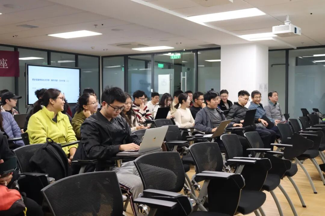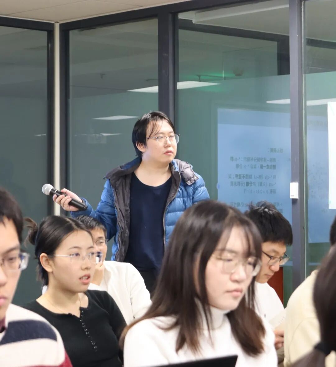讲座末尾的提问环节中,现场老师、同学踊跃提问。武致知老师首先请内藤丘教授与朱利安博士后分享了采用统计分析、人工智能等技术进行语言学研究的流程和经验。同学们随即积极提问,问题包括论证汉语与藏语、缅甸语之间语音对应关系的方法,相关韵部的合流时间,语言模型分辨时间差异和方言、地域差异的手段,上古音与汉代音的区别等。内藤丘教授与朱利安博士后对这些问题一一给予回应,现场讨论热烈。